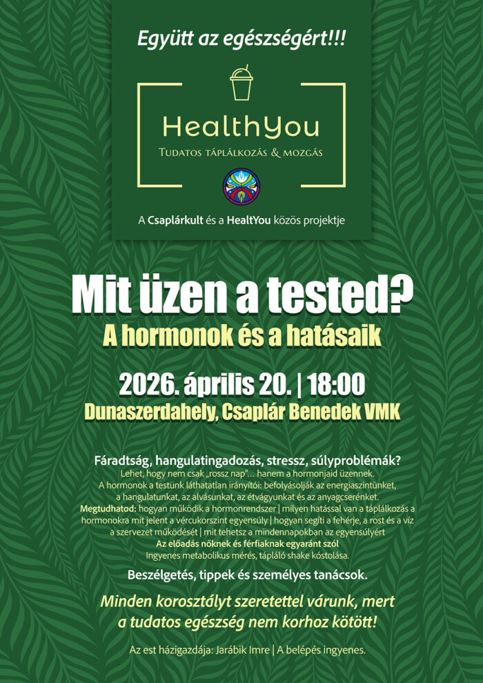 Beszélgetés, tippek és személyes tanácsok. Minden korosztályt szeretettel várunk, mert a tudatos egészség nem korhoz kötött!