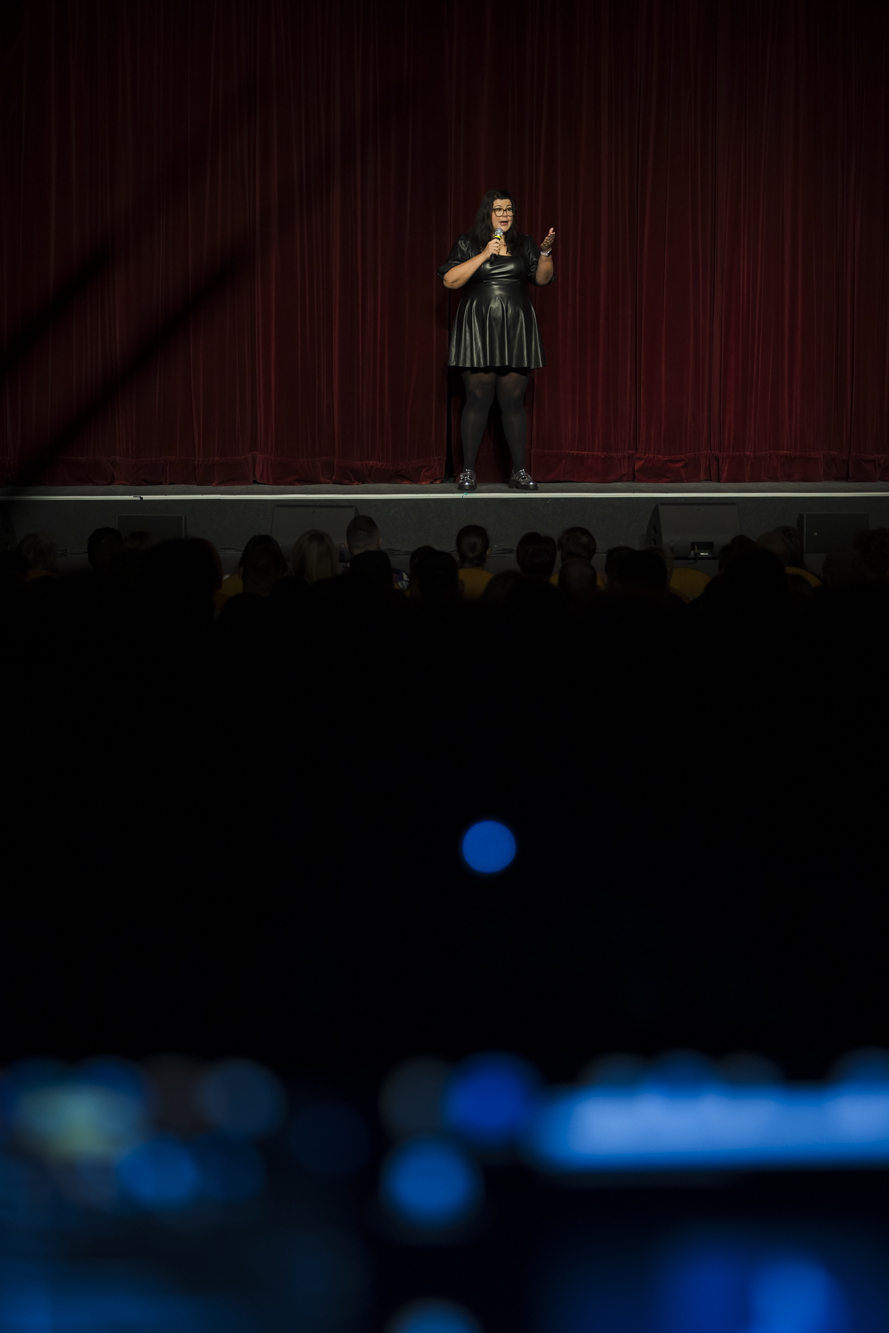Pénteken, április 17-én dupla előadással szórakoztatta a dunaszerdahelyi közönséget Ráskó Eszter, aki új önálló estjével érkezett városunkba. A humorista kétszer is megtöltötte a Csaplárkult színháztermét – nem véletlenül örvendett ekkora népszerűségnek, hiszen az őszinte, szókimondó és felszabadító nevetésből egy percig sem volt hiány. Köszönjük ezt a fantasztikus hangulatot!